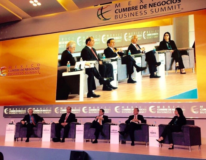 Arturo Valenzuela, Sebastian Vos, and Paula Uribe were engaged in the panel and keynote presentations that took place in Querétaro, Mexico. Dr. Valenzuela, Senior of Advisor for Latin America at Covington & Burling, moderated a panel discussion with Juan Orlando Hernández, President of The Republic of Honduras, and Salvador Arriola, Secretary for IberoAmerican Cooperation, SEGIB, Spain, which focused on the recent free trade agreement between Mexico and five Central American countries. He also moderated a discussion (pictured below) on the prospects for the Pacific Alliance with Ildefonso Guajardo, Secretary of Economy in Mexico, Luis Miguel Castilla, Former Minister of Economy & Finance in Peru, Felipe Larraín Bascuñán, Former Minister of Finance in Chile, and Vanessa Rubio, Undersecretary for Latin America and the Caribbean in Mexico. Dr. Valenzuela also held private meetings with two members of the Mexican cabinet who are leading the country’s far-reaching reform efforts.